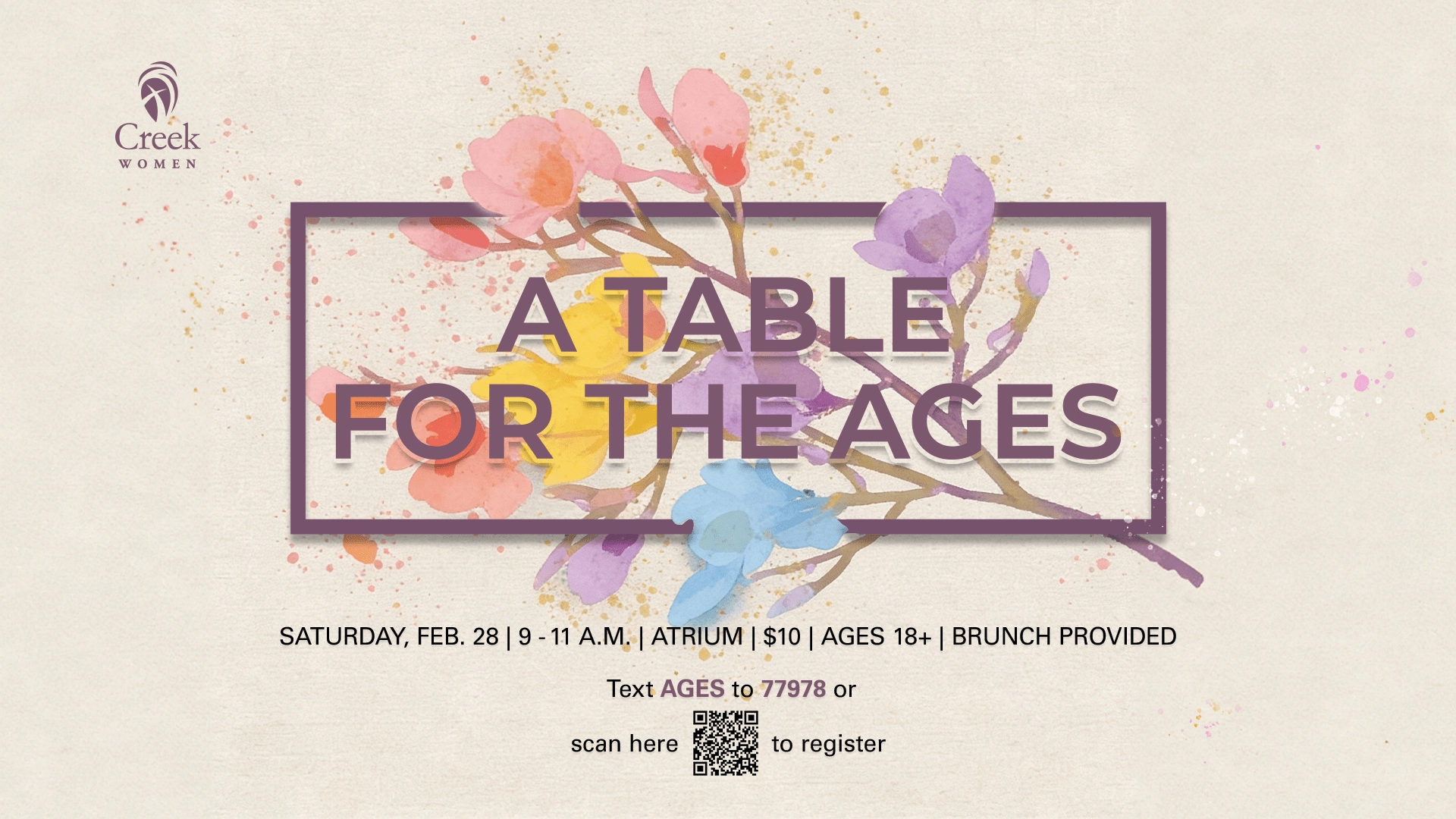 Join us for our annual event, where women of ALL ages will gather, learn and share life together around a table over a meal! You will leave encouraged, hopeful and inspired to live out your God-given potential. Spots are limited and registration is required.
