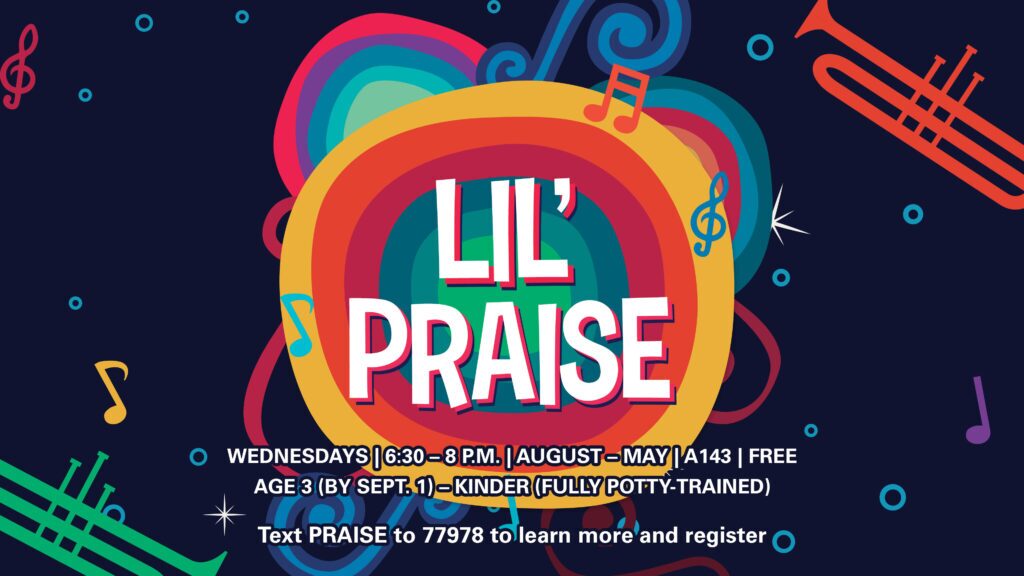Lil’ Praise is a fun night of worship and Bible activities. Kids will enjoy praising God together, while singing familiar favorites and learning new worship songs, diving into the truth of God’s Word in fun and interactive lessons.
