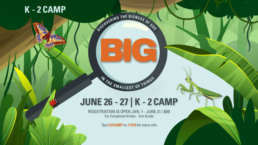 Get ready to run, splash, and rejoice at our Rainforest River Adventure! Join us for a refreshing river of fun—complete with rushing water slides, rippling splash zones, and roaring outdoor games. We’ll rejoice in worship and remember God’s wonderful world together! Outside ONLY — bring your swimsuit, towel, and sunscreen for this roaring river day!