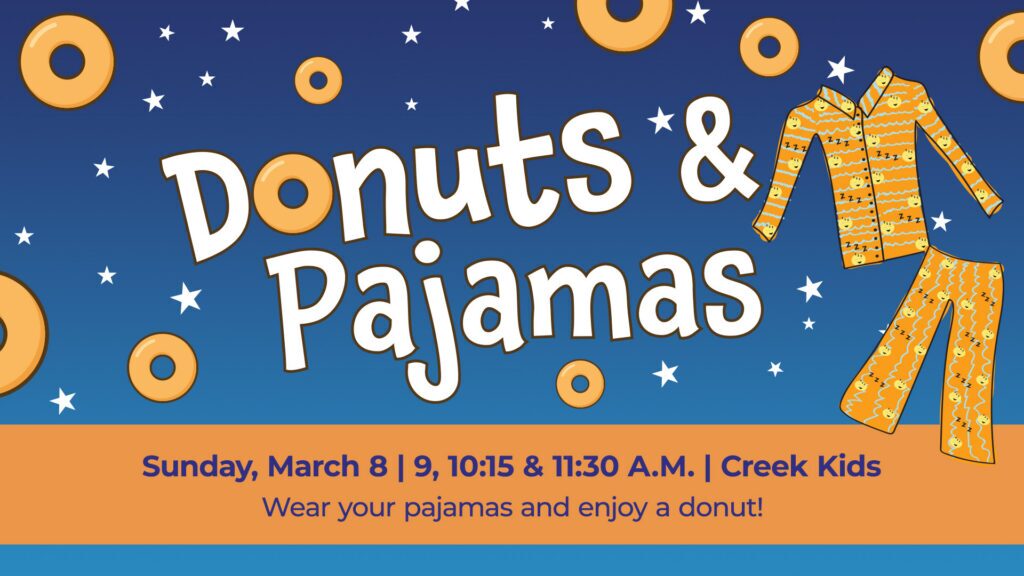 The clock is skipping forward, and we know everyone might be feeling a little extra sleepy! So, come to Creek Kids in pajamas and have a donut as we ease into Daylight Saving Time.