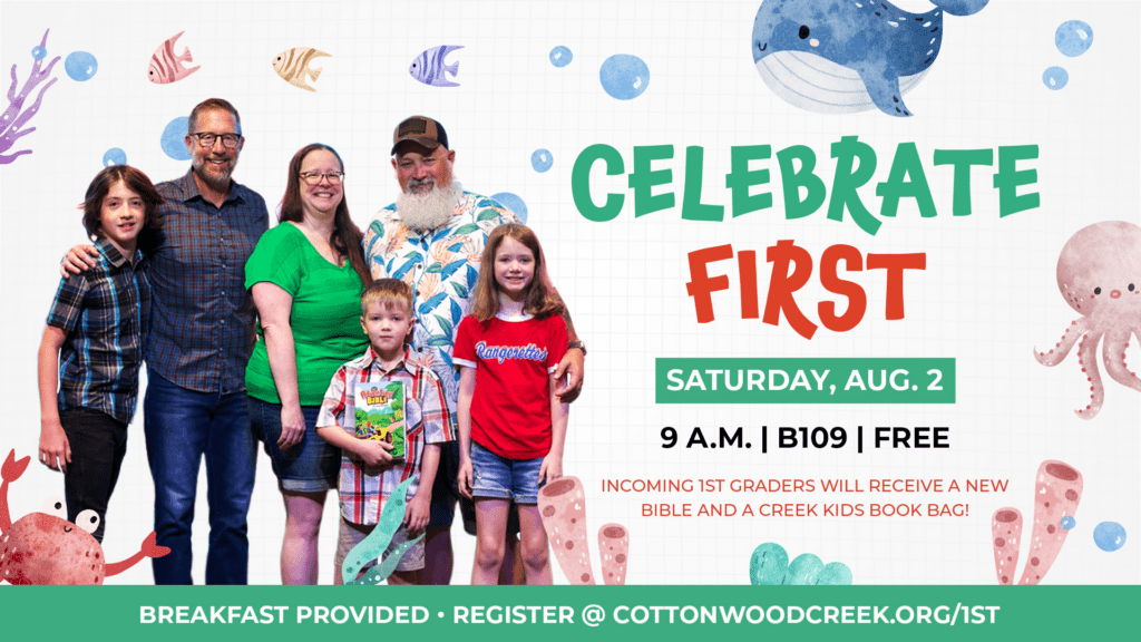 During Celebrate First, incoming 1st graders and their families will enjoy breakfast tacos, meet their new ministry leaders and receive a “Big Kid” bag that includes a new Bible and a book bag.