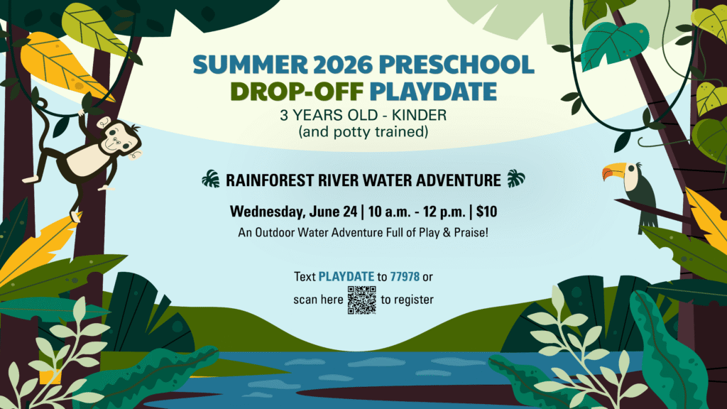 Swing on over for a roaring good time at our Preschool Jungle Adventure! We’ll create crafty creatures, play joyful jungle games, and worship our great Creator who made the whole wild world! Indoor & Outdoor Rotations — come ready for a morning of movement, music, and monkeying around!