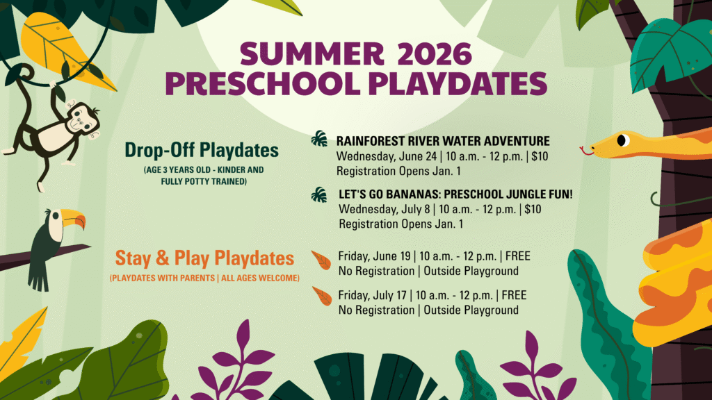 Wednesday, June 24 | 10 a.m. – Noon | Ages 3 – Kinder (Fully Potty-Trained) | $10